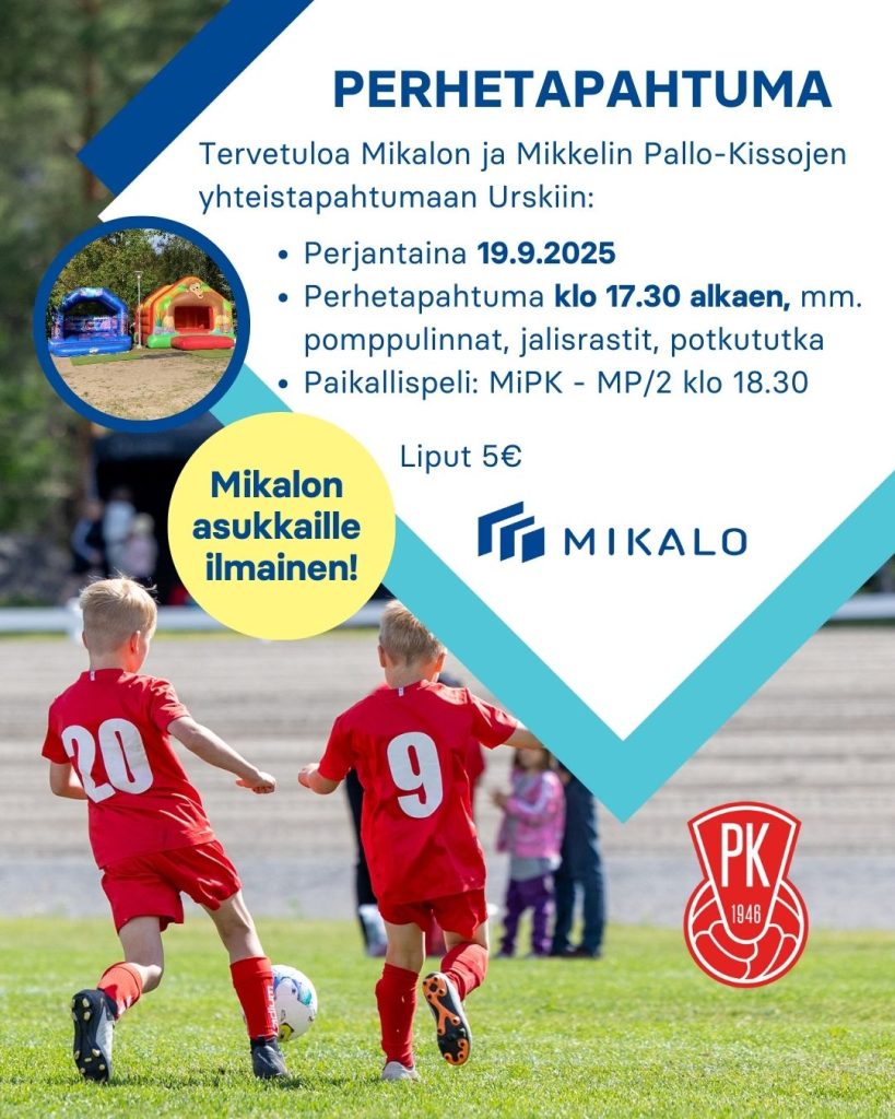 Kutsumme kaikki mukaan viihtymään Urskiin pe 19.9., kun Pallo-Kissat kohtaavat paikalliskamppailussa MP/2-joukkueen.