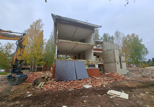 Kiertotalouspainotteiset tarjoukset ovat tähän mennessä olleet kalliimpia, joten olemme valinneet perinteisemmän purkamisen. Tämä ei silti tarkoita, etteikö purettu materiaali päätyisi uudelleenkäyttöön. Koen, että kiertotalousmarkkina ei tällä alueella ole vielä kehittynyt siihen pisteeseen, että se näkyisi purkukustannusten laskuna. Toivon, että jossain purku-urakassa Suomessa näin jo tapahtuisi.